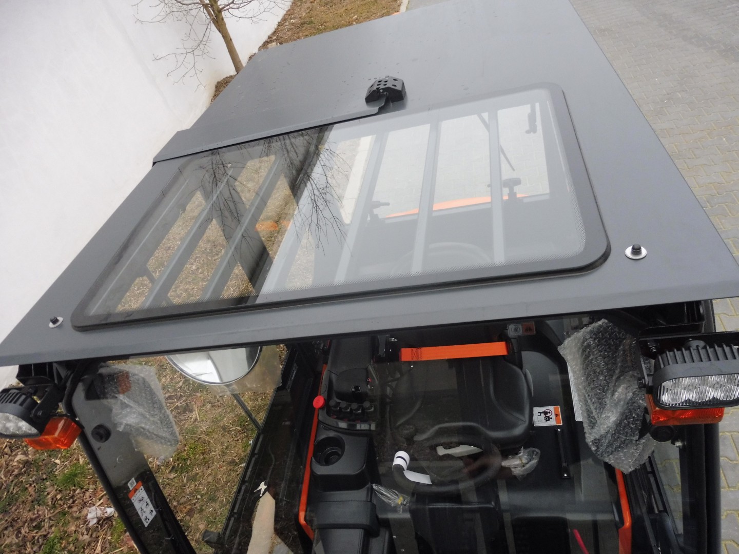 The cab's roof glass is made of toughened glass coated with safety film, which provides maximum protection for the operator, as it does not shatter into small fragments in the event of damage, but retains its shape and therefore minimises the risk of injury to the operator.