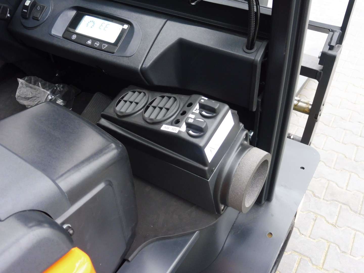 Efficient forklift cab heating with adjustable airflow and adjustable diffusers ensures working comfort in all conditions . Adjustable air outlets allow the warm stream to be directed precisely, allowing the interior to be heated quickly and the windows to evaporate for better visibility.