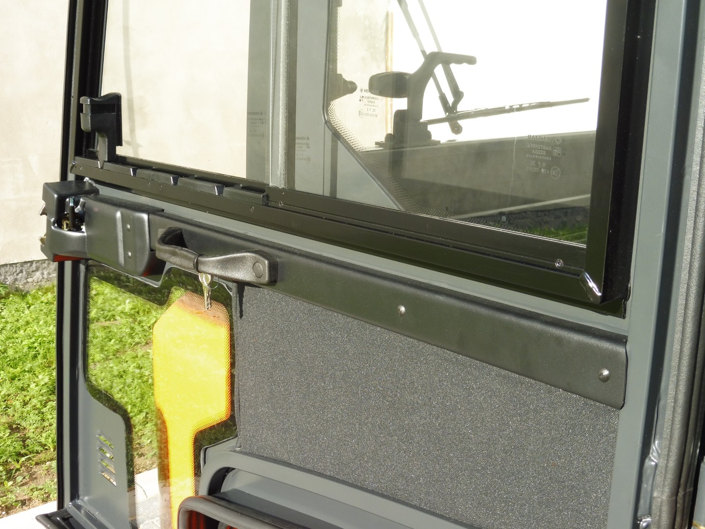 The cab windscreen is made of toughened glass coated with safety film, which provides maximum protection for the operator, as it does not shatter into small fragments in the event of damage, but retains its shape and therefore minimises the risk of injury to the operator.