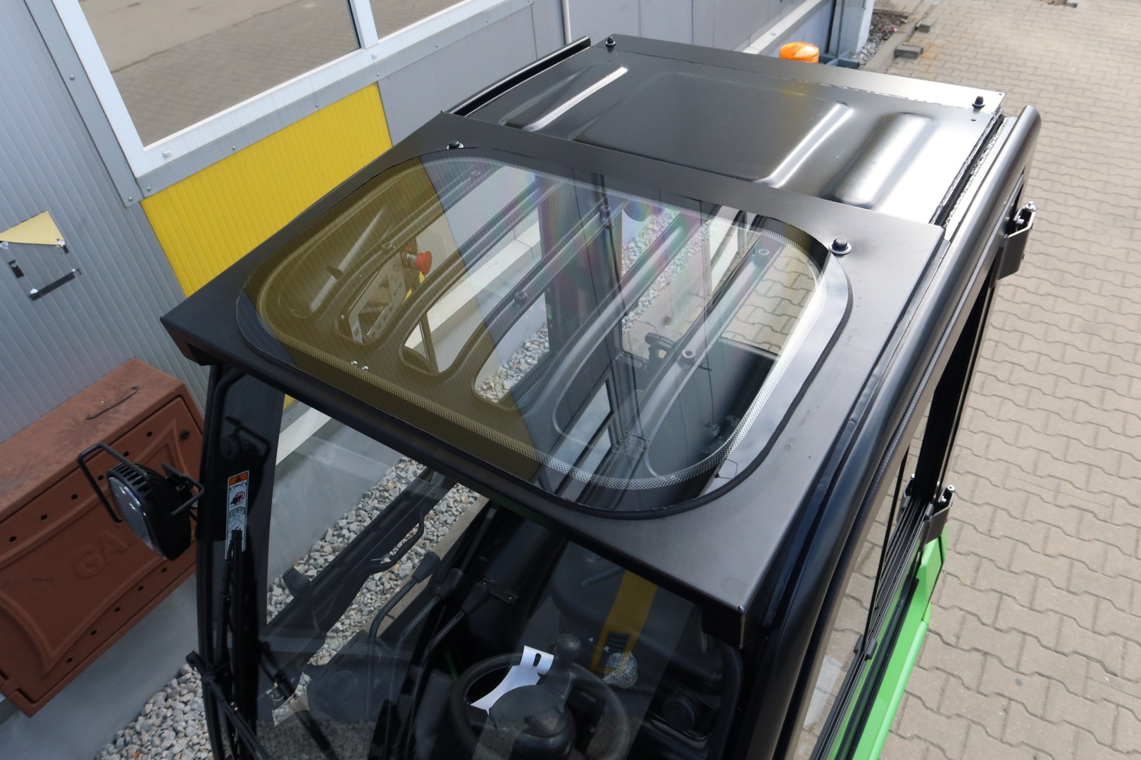 The cab for this forklift model is a modern solution combining lightweight construction with a large area of glazing, guaranteeing excellent visibility and working comfort in all weather conditions. With its ergonomic design, durable materials and careful workmanship, the cab ensures not only safety but also comfort in any environment, even the most demanding.
