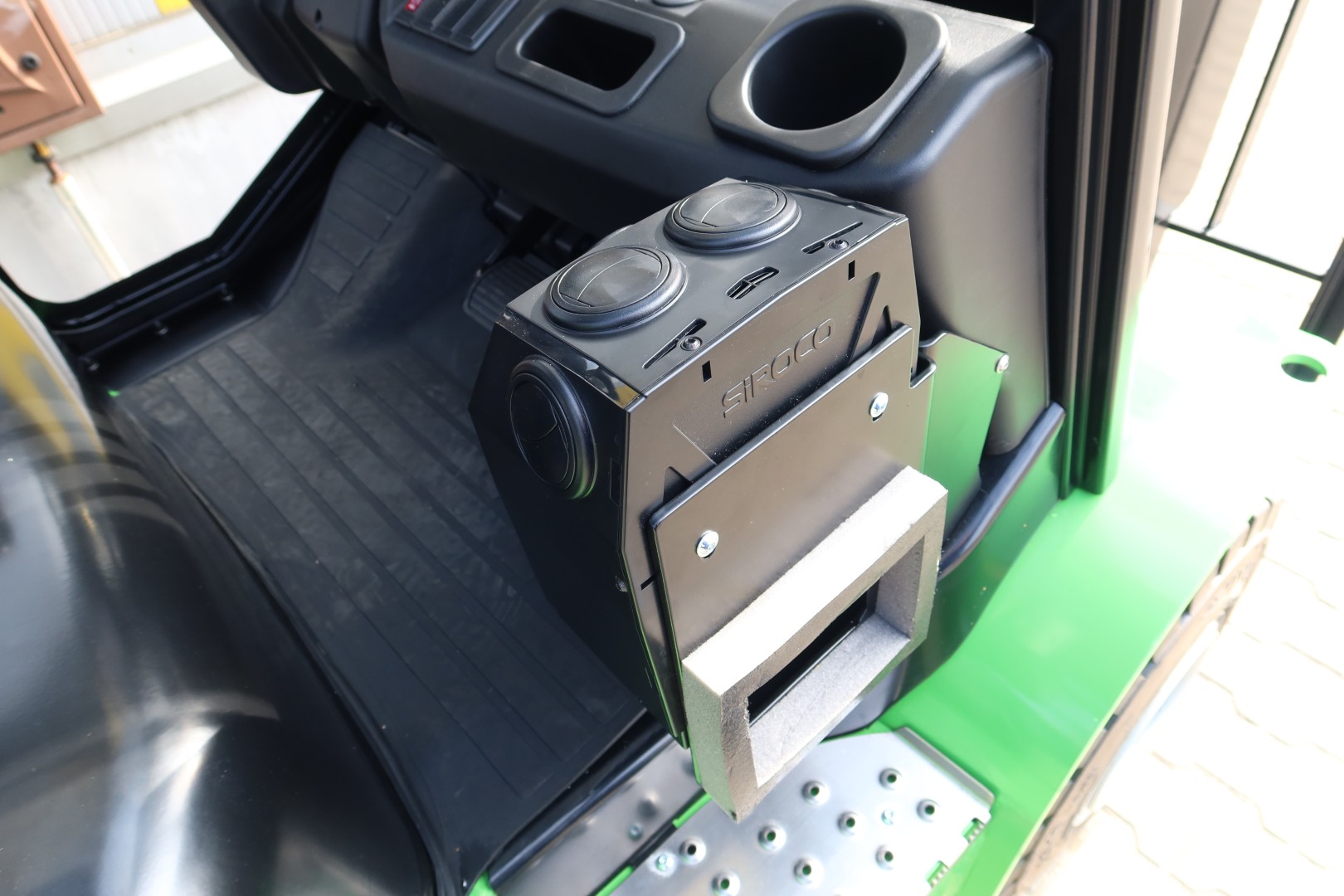 Efficient forklift cab heating with adjustable airflow and adjustable diffusers ensures working comfort in all conditions . Adjustable air outlets allow the warm stream to be directed precisely, allowing the interior to be heated quickly and the windows to evaporate for better visibility.