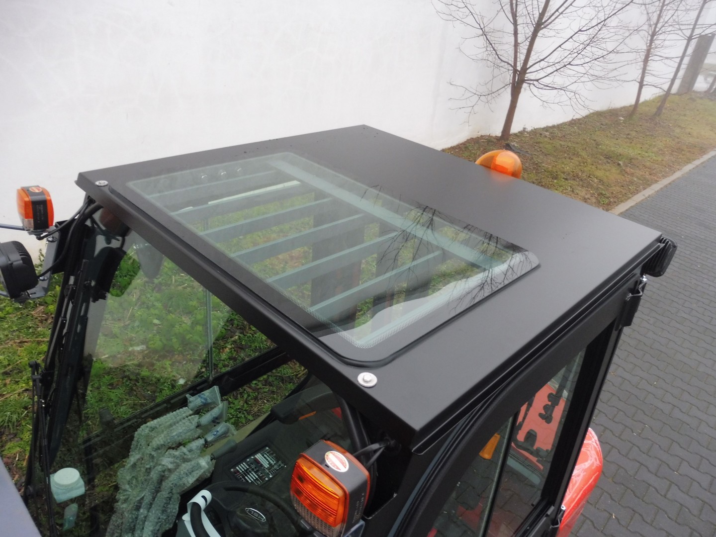 The cab's roof glass is made of toughened glass coated with safety film, which provides maximum protection for the operator, as it does not shatter into small fragments in the event of damage, but retains its shape and therefore minimises the risk of injury to the operator.