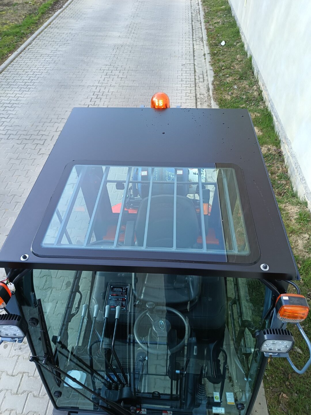 The cab's roof glass is made of toughened glass coated with safety film, which provides maximum protection for the operator, as it does not shatter into small fragments in the event of damage, but retains its shape and therefore minimises the risk of injury to the operator.