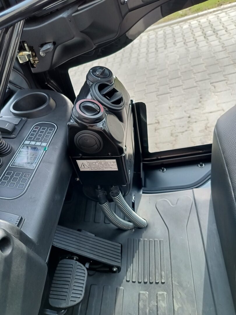 Efficient forklift cab heating with adjustable airflow and adjustable diffusers ensures working comfort in all conditions . Adjustable air outlets allow the warm stream to be directed precisely, allowing the interior to be heated quickly and the windows to evaporate for better visibility.