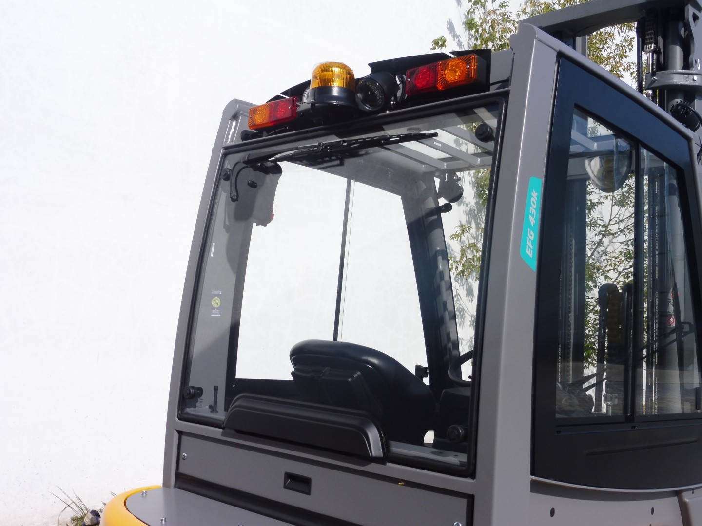 The cab for this forklift model is a modern solution combining lightweight construction with a large area of glazing, guaranteeing excellent visibility and working comfort in all weather conditions. With its ergonomic design, durable materials and careful workmanship, the cab ensures not only safety but also comfort in any environment, even the most demanding.