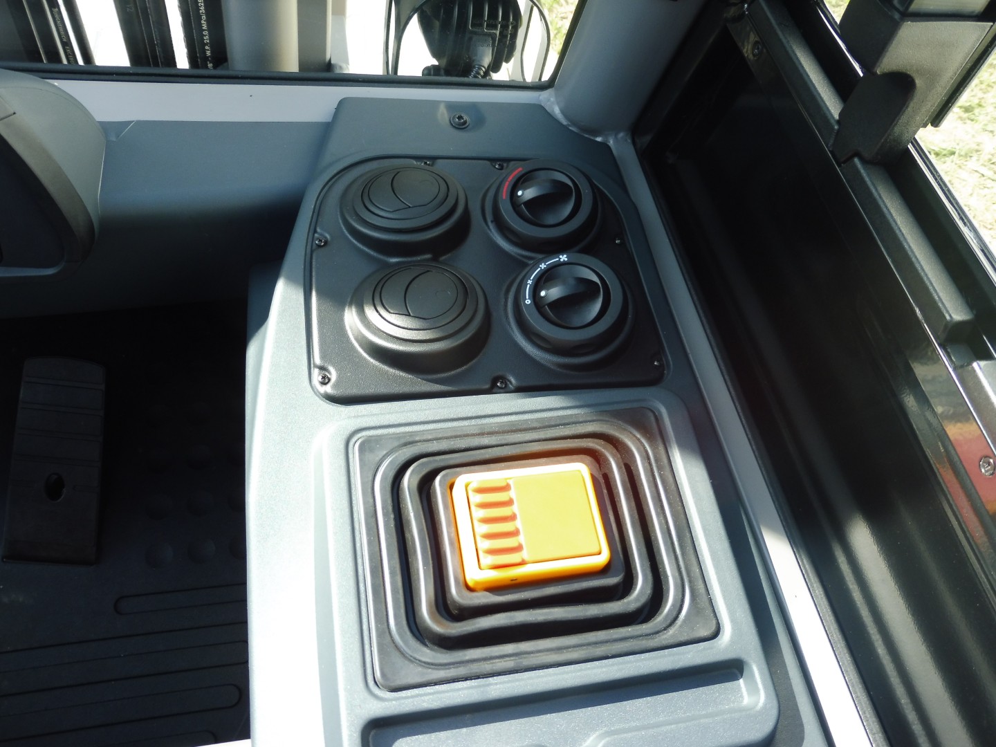 Efficient forklift cab heating with adjustable airflow and adjustable diffusers ensures working comfort in all conditions . Adjustable air outlets allow the warm stream to be directed precisely, allowing the interior to be heated quickly and the windows to evaporate for better visibility.