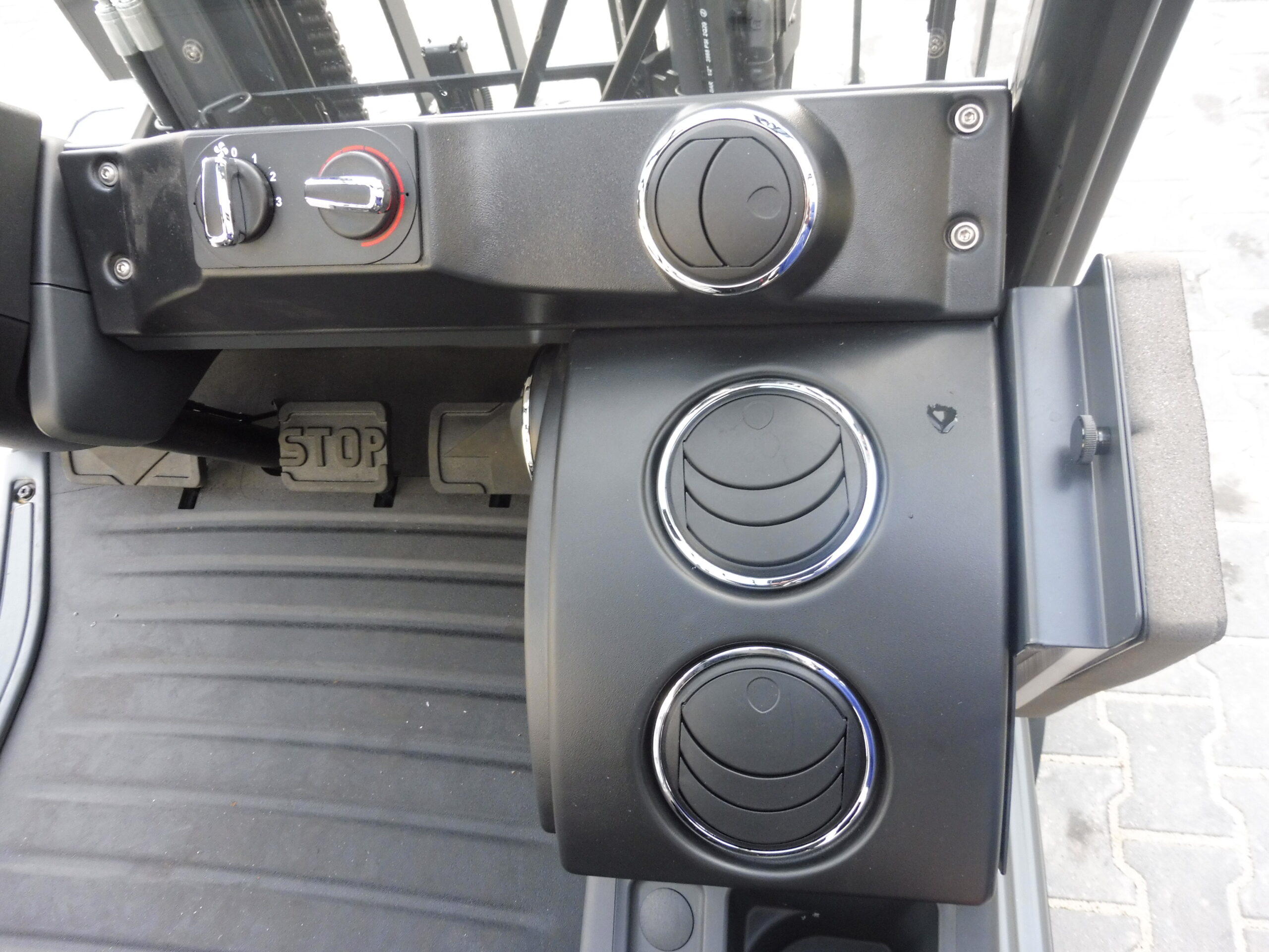 The cab heating has been integrated into the forklift's dashboard, ensuring efficient heat distribution and comfort in cold weather. This allows the operator to focus on the task at hand without worrying about weather conditions, while the ergonomic arrangement of the air vents ensures that the cab interior is heated evenly and that the windows evaporate quickly.