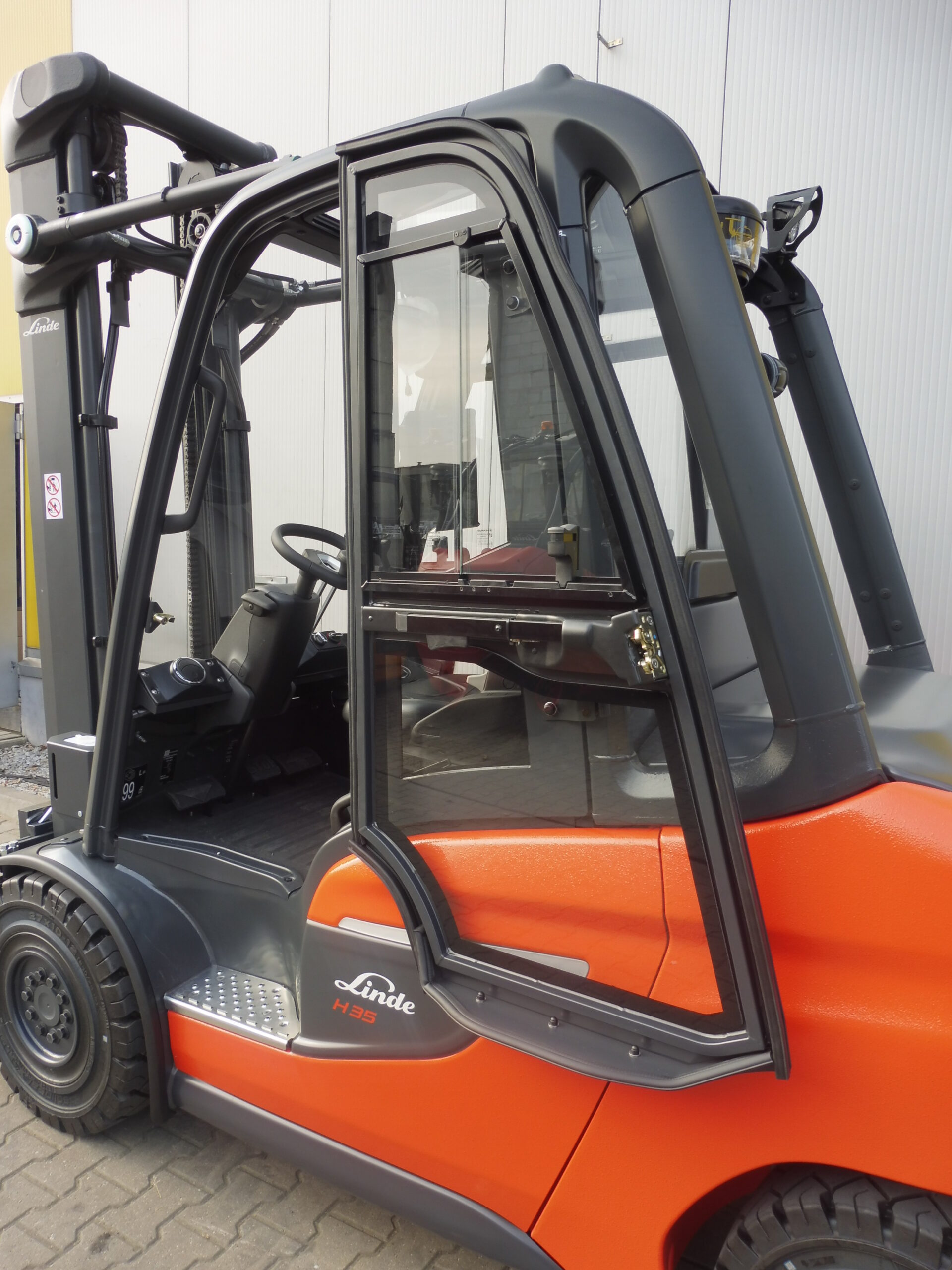 The cab for this forklift model is a modern solution combining a lightweight design with a large area of glazing to guarantee excellent visibility and working comfort in all weather conditions. With its ergonomic design, durable materials and careful workmanship, the cab provides not only safety but also comfort in any environment, even the most demanding.