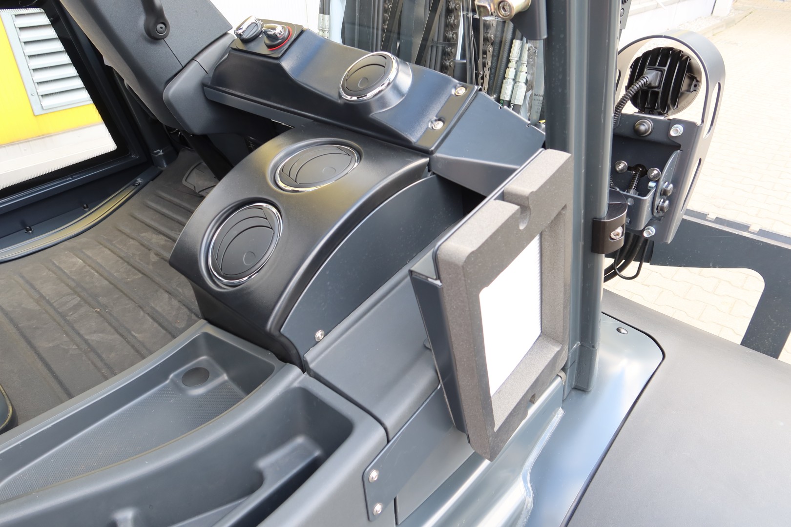 The cab for this forklift model is a modern solution combining a lightweight design with a large area of glazing to guarantee excellent visibility and working comfort in all weather conditions. With its ergonomic design, durable materials and careful workmanship, the cab provides not only safety but also comfort in any environment, even the most demanding.
