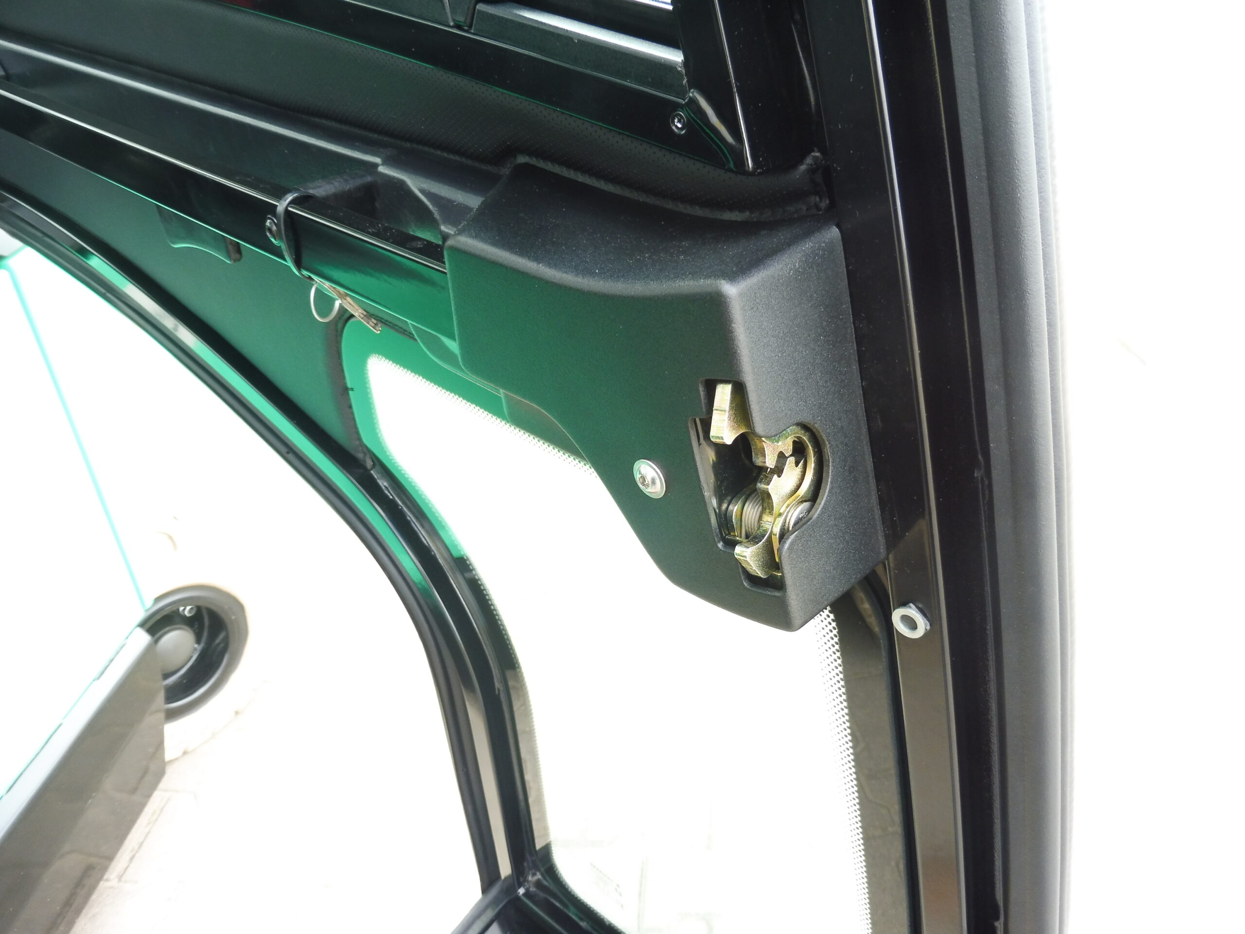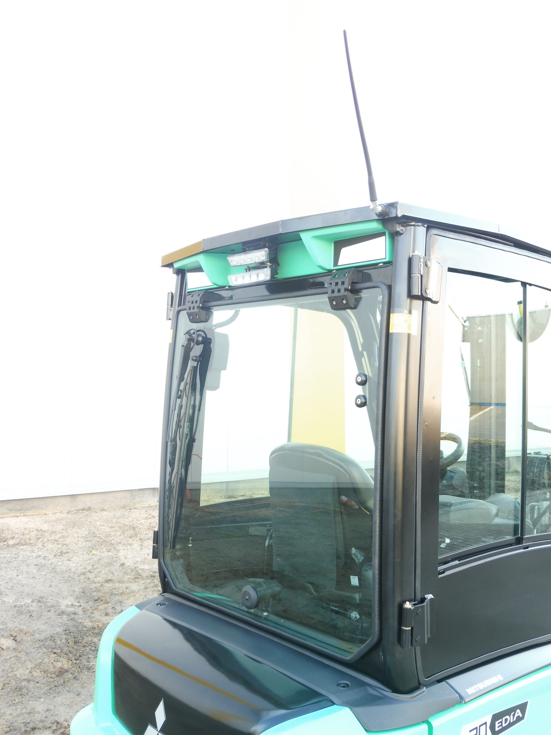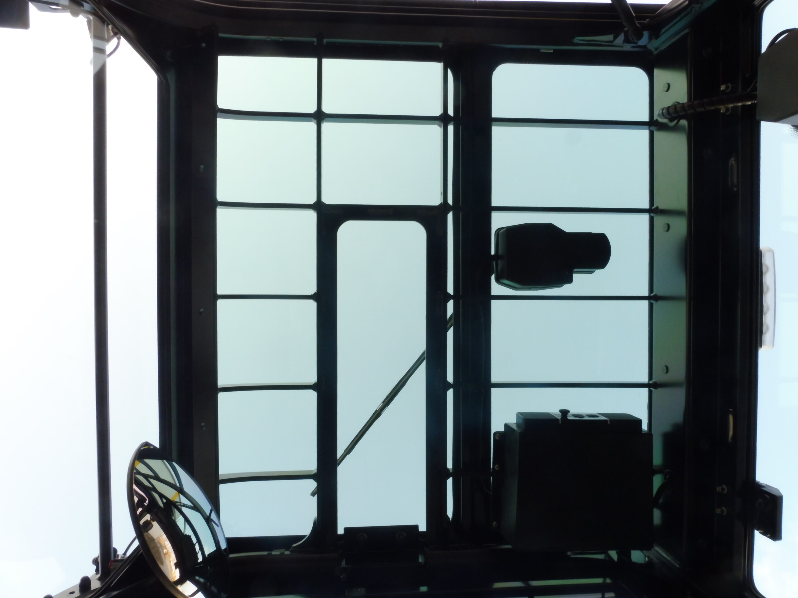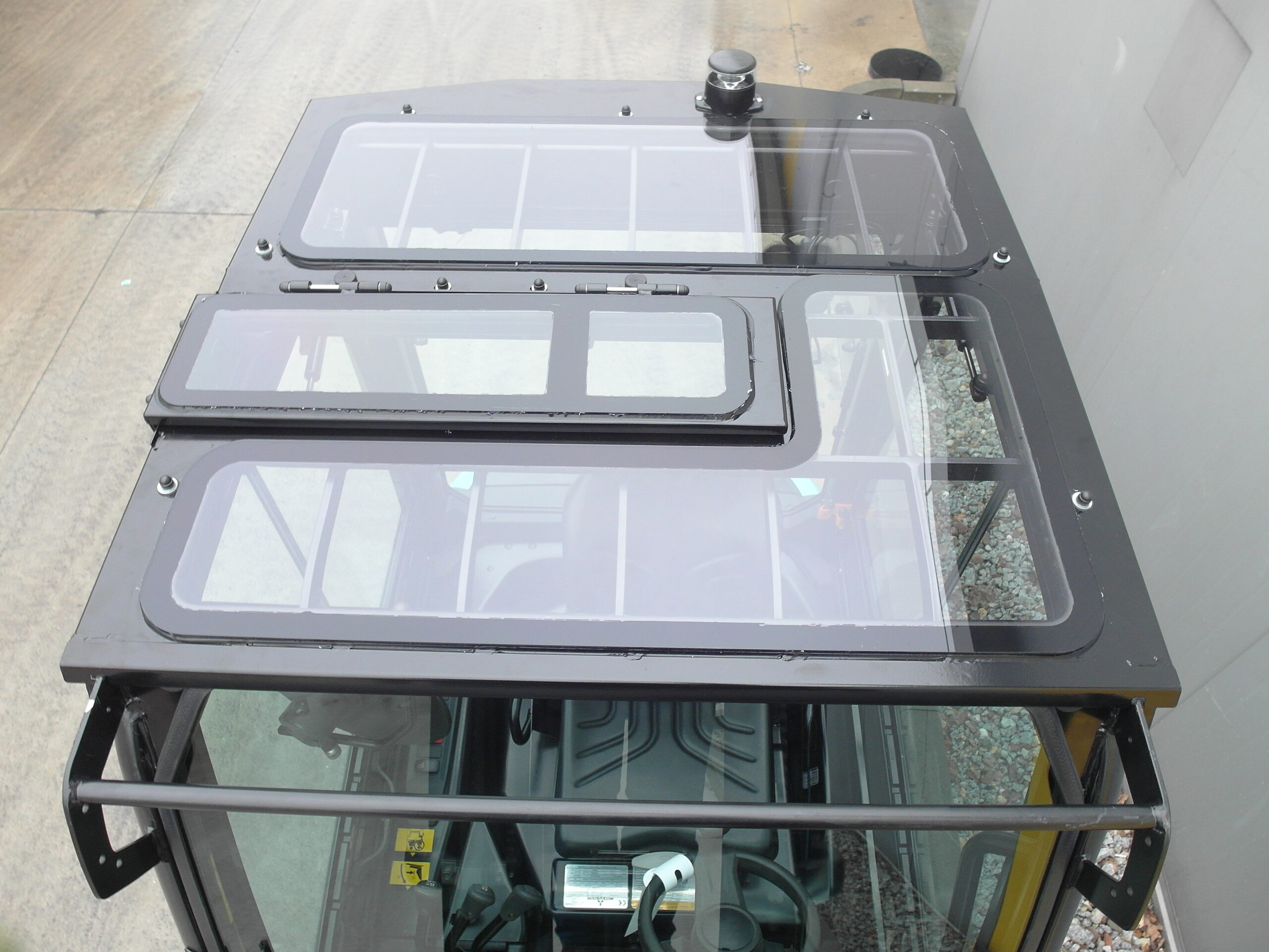 The cab's roof glass is made of hardened polycarbonate, which is highly resistant to impact and cracking. In the event of damage, the material does not disintegrate into sharp fragments, significantly reducing the risk of injury to the operator and increasing operational safety.