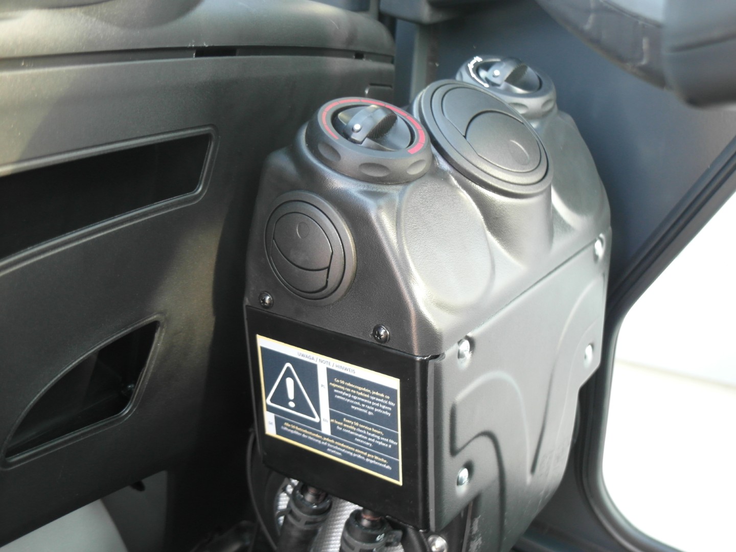 Efficient forklift cab heating with adjustable airflow and adjustable diffusers ensures working comfort in all conditions . Adjustable air outlets allow the warm stream to be directed precisely, allowing the interior to be heated quickly and the windows to evaporate for better visibility.
