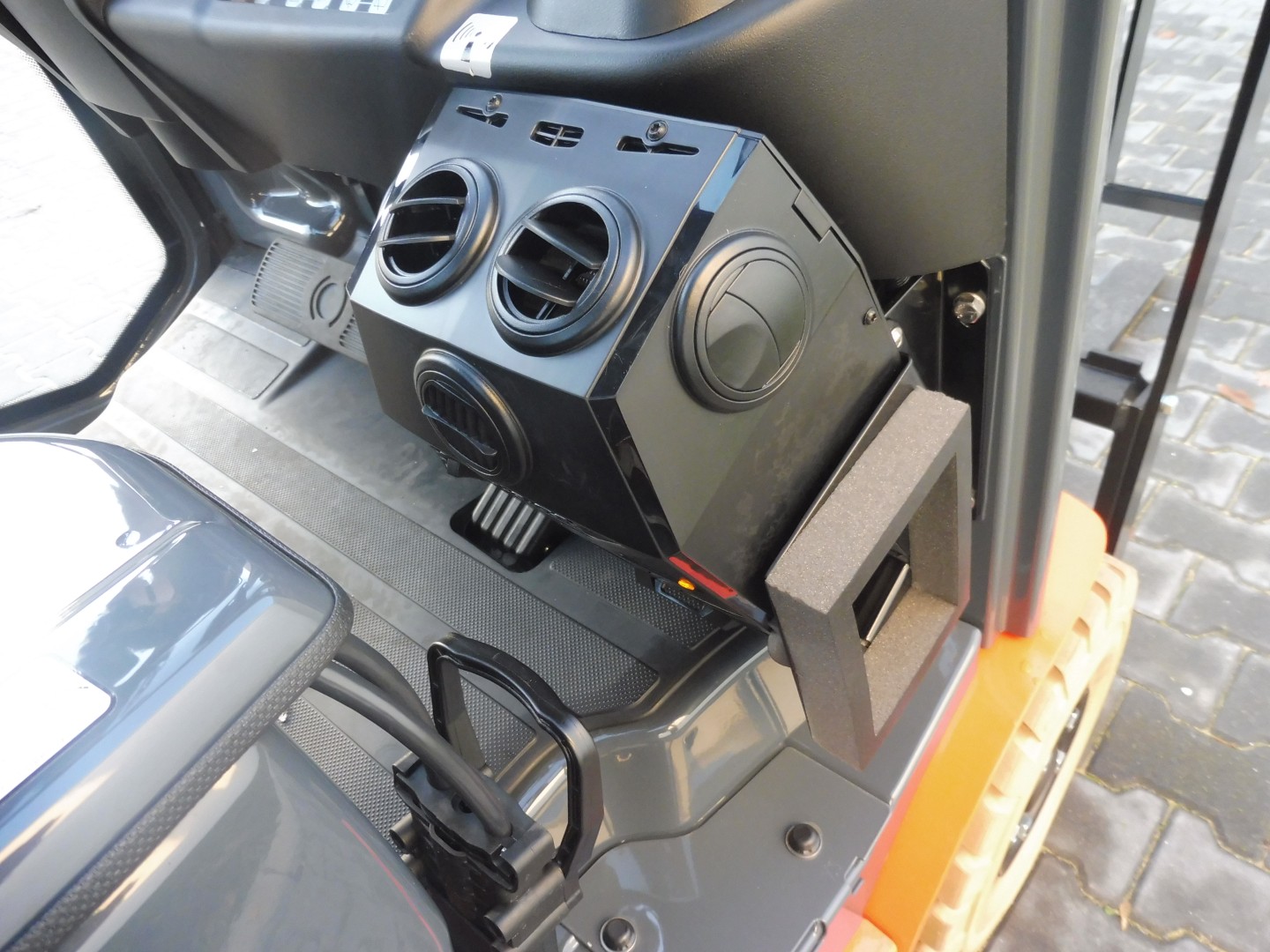 The cab for this forklift model is a modern solution combining lightweight construction with a large area of glazing, guaranteeing excellent visibility and working comfort in all weather conditions. With its ergonomic design, durable materials and careful workmanship, the cab ensures not only safety but also comfort in any environment, even the most demanding.