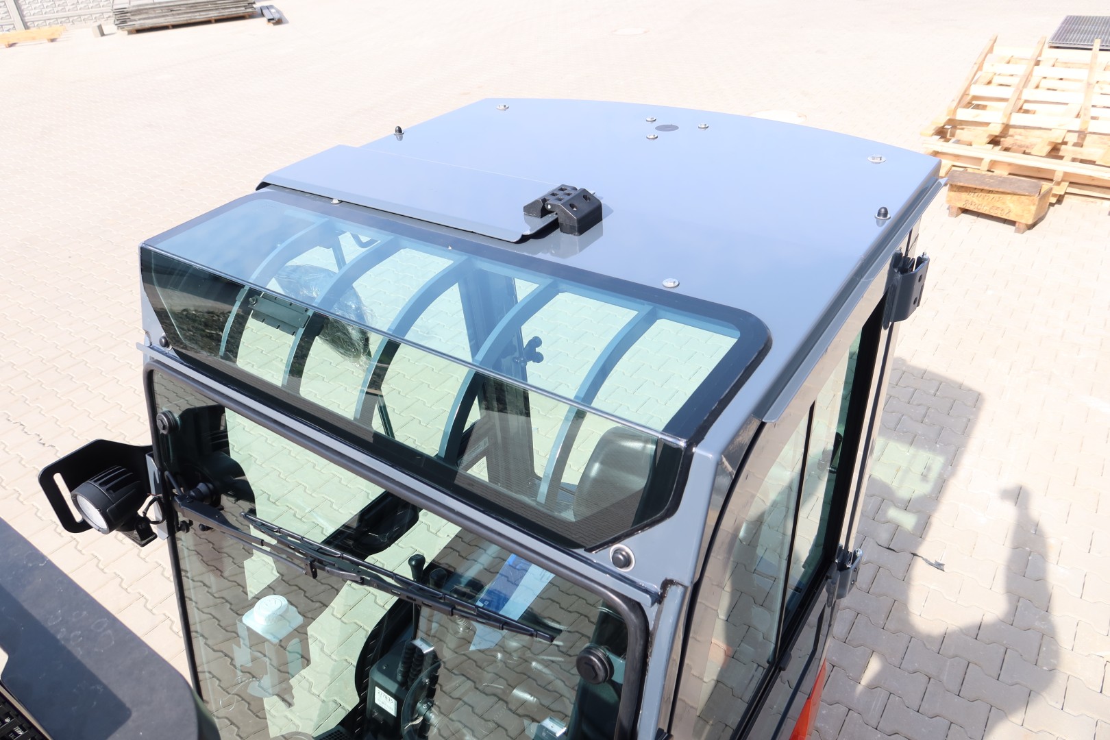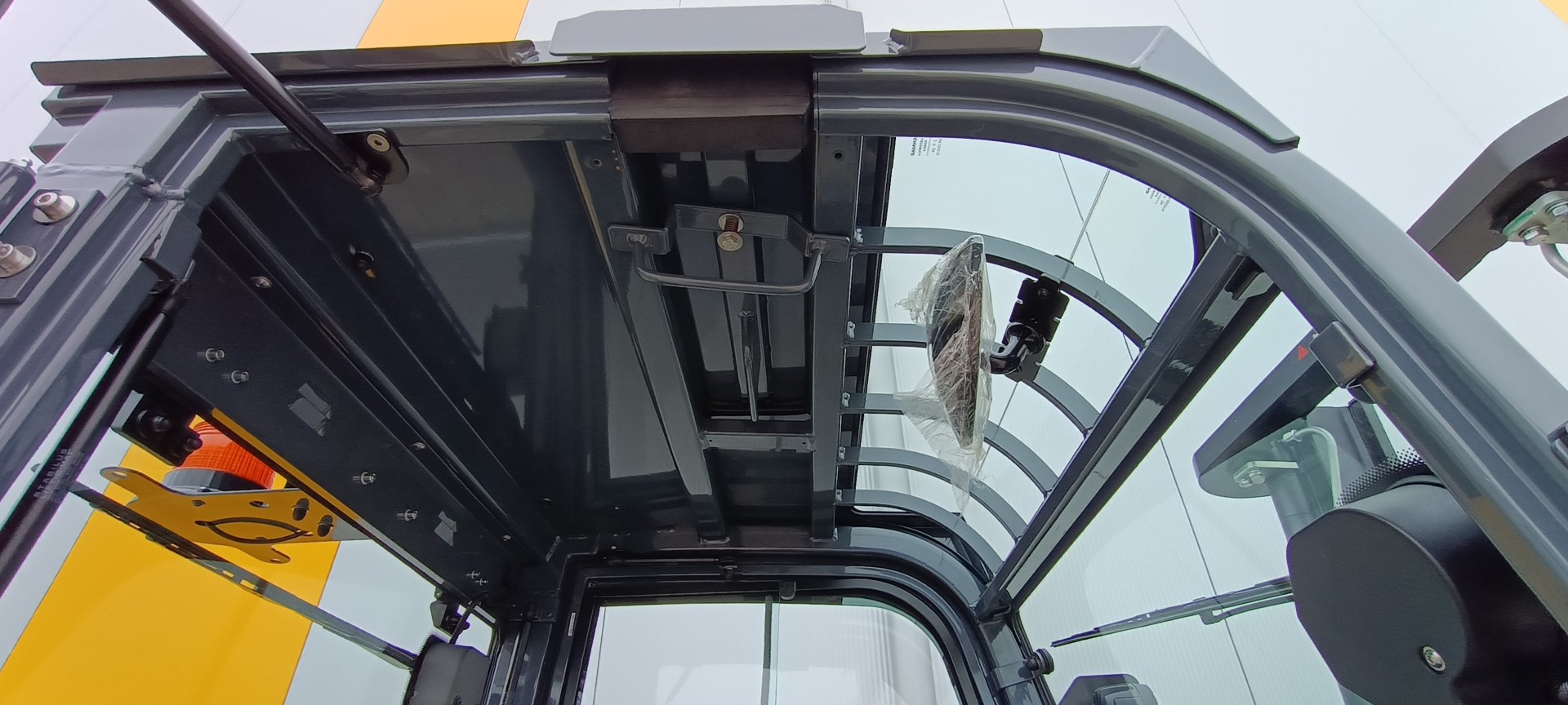 The cab's roof glass is made of toughened glass coated with safety film, which provides maximum protection for the operator, as it does not shatter into small fragments in the event of damage, but retains its shape and therefore minimises the risk of injury to the operator.