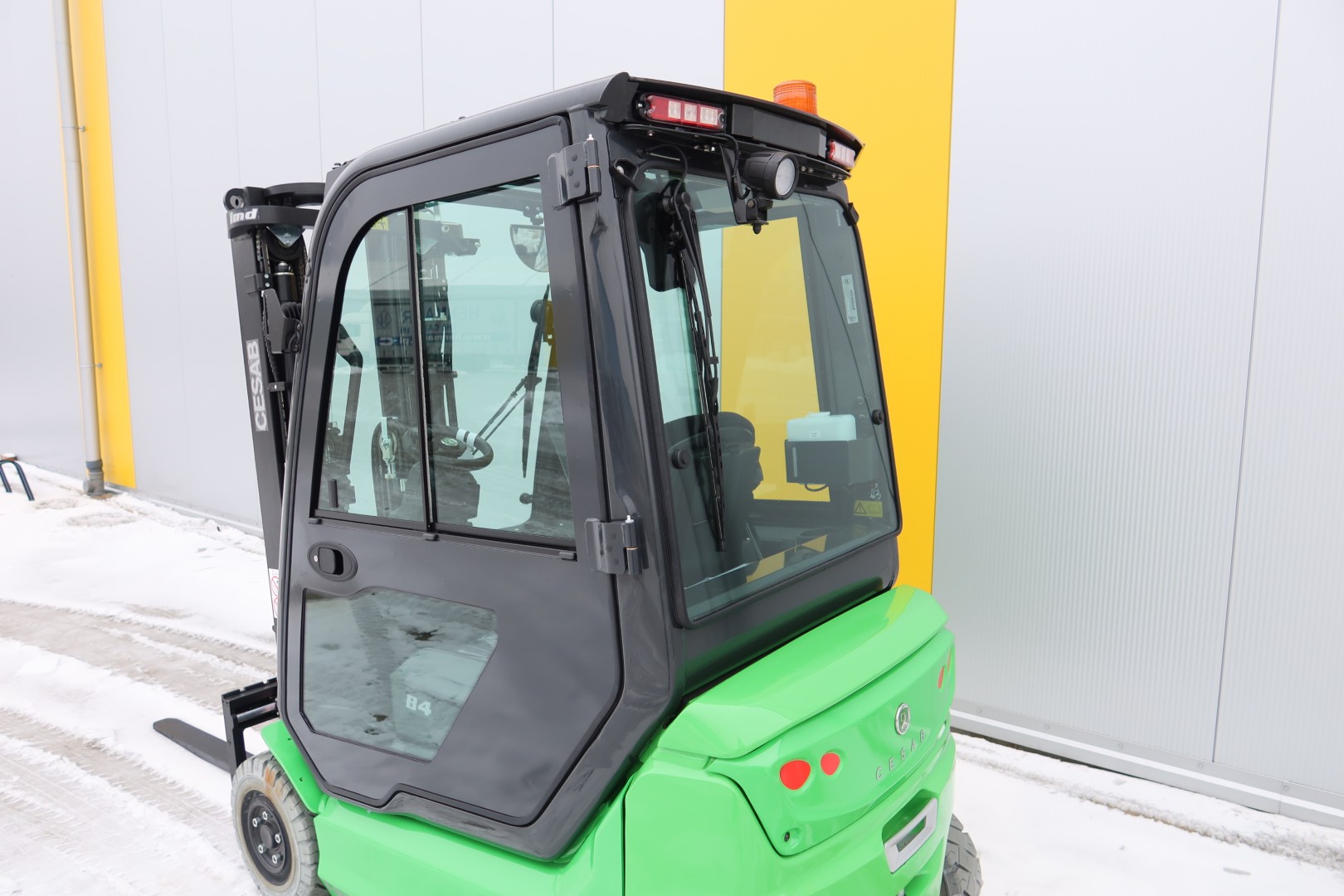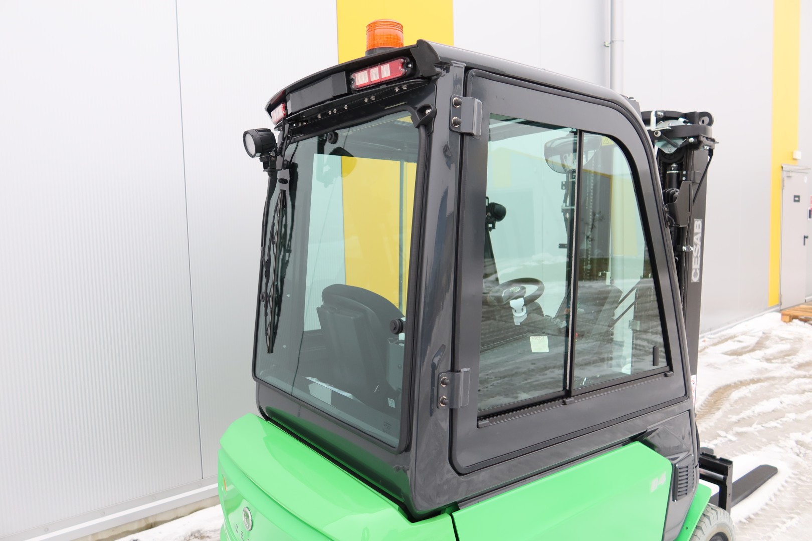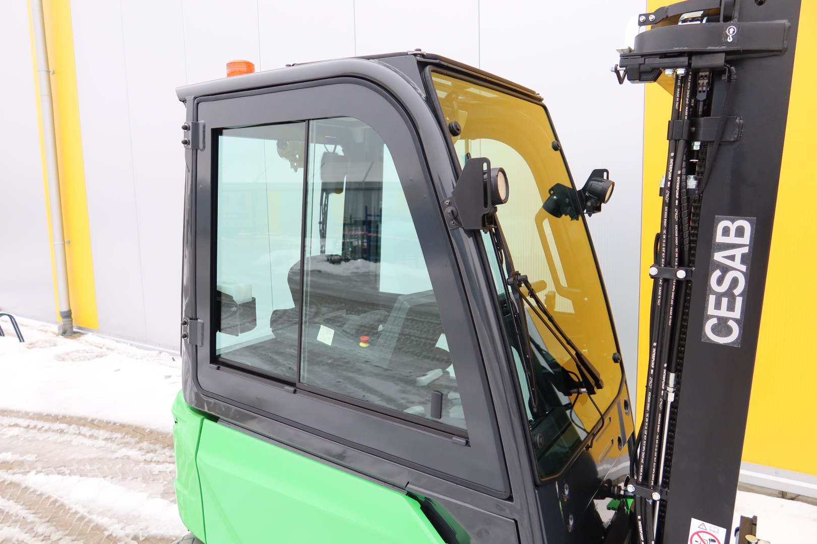 The cab for this forklift model is a modern solution combining lightweight construction with a large area of glazing, guaranteeing excellent visibility and working comfort in all weather conditions. With its ergonomic design, durable materials and careful workmanship, the cab ensures not only safety but also comfort in any environment, even the most demanding.