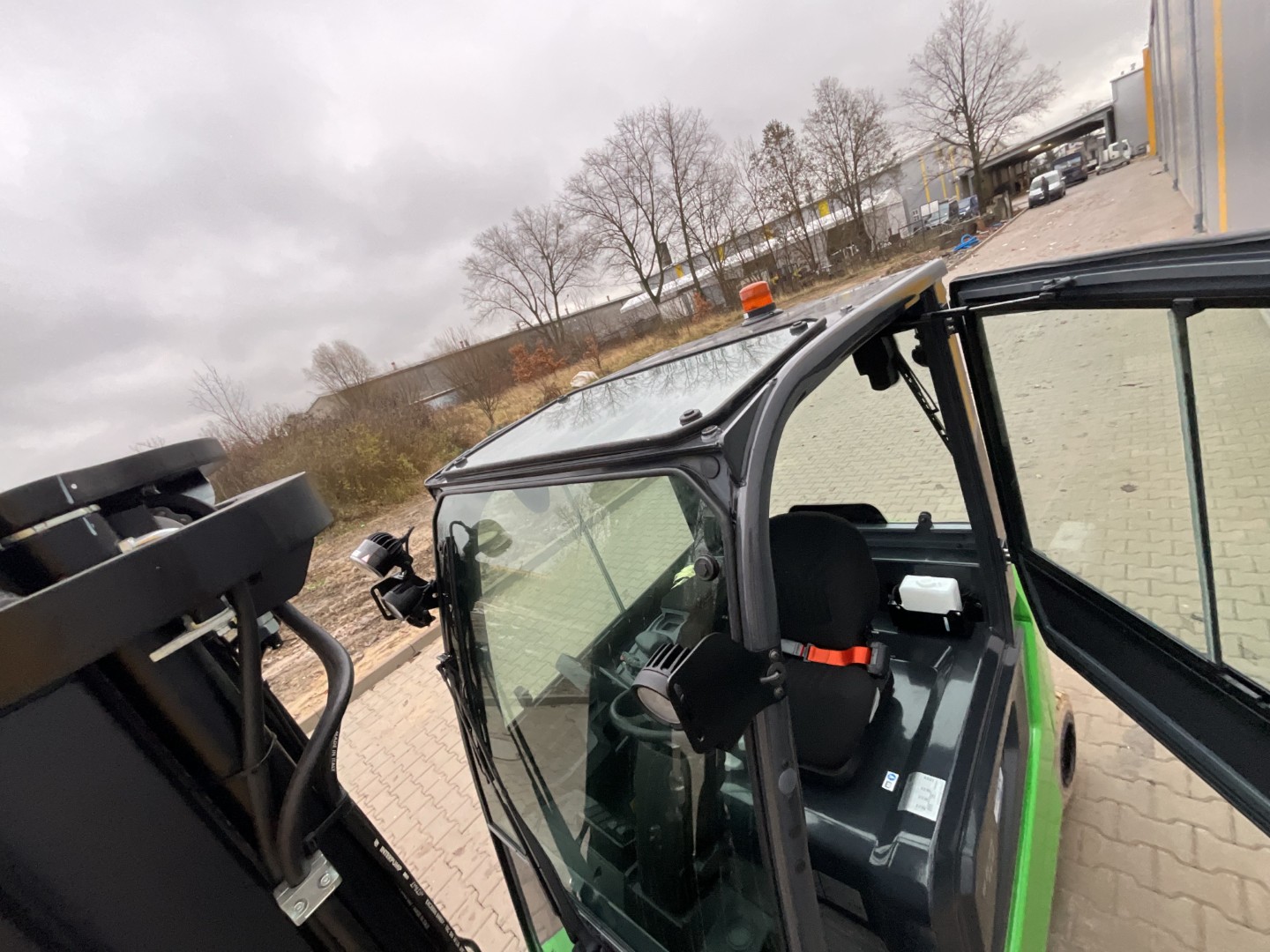 The cab for this forklift model is a modern solution combining lightweight construction with a large area of glazing, guaranteeing excellent visibility and working comfort in all weather conditions. With its ergonomic design, durable materials and careful workmanship, the cab ensures not only safety but also comfort in any environment, even the most demanding.